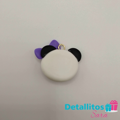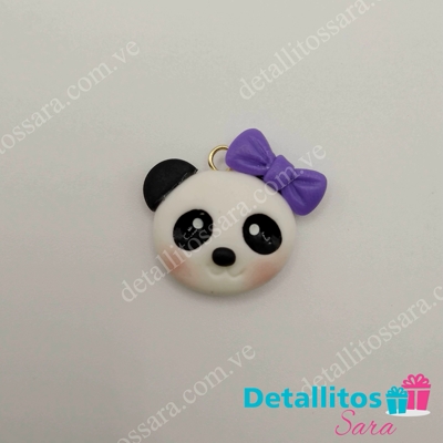 Dije de Oso Panda con lazo fucsia elaborado con masa flexible (Porcelana fría). Ideal para collares, pulseras y zarcillos. Medidas aproximadas: 2cm