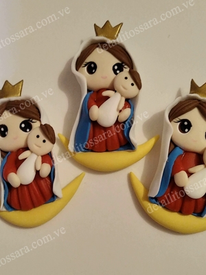Recuerdo Souvenirs de la Virgen de Fátima elaborado con masa flexible (Porcelana Fría). Ideal para darle ese toque especial a tus creaciones y eventos. Medidas aproximadas: 5cm de alto x 3cm de ancho.