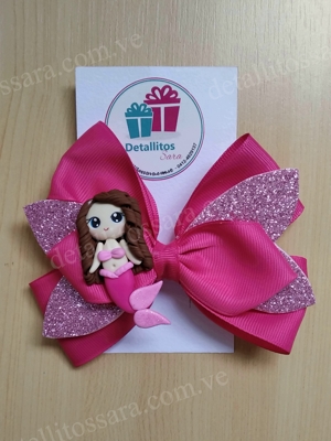 Lazo para el cabello rojo y dorado escarchado, con aplique de unicornio de masa flexible.