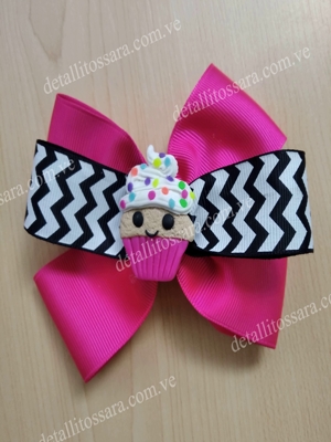 Lazos para el cabello, elaborados con cintas gross verde y blanca, decorado con aplique de masa flexible de Cupcake de la sirenita.