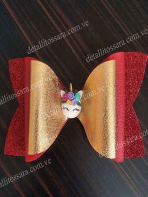 Lazo para el cabello, elaborado con cintas gross naranja y blanca, decorado con aplique de masa flexible de carita de la princesa Moana.